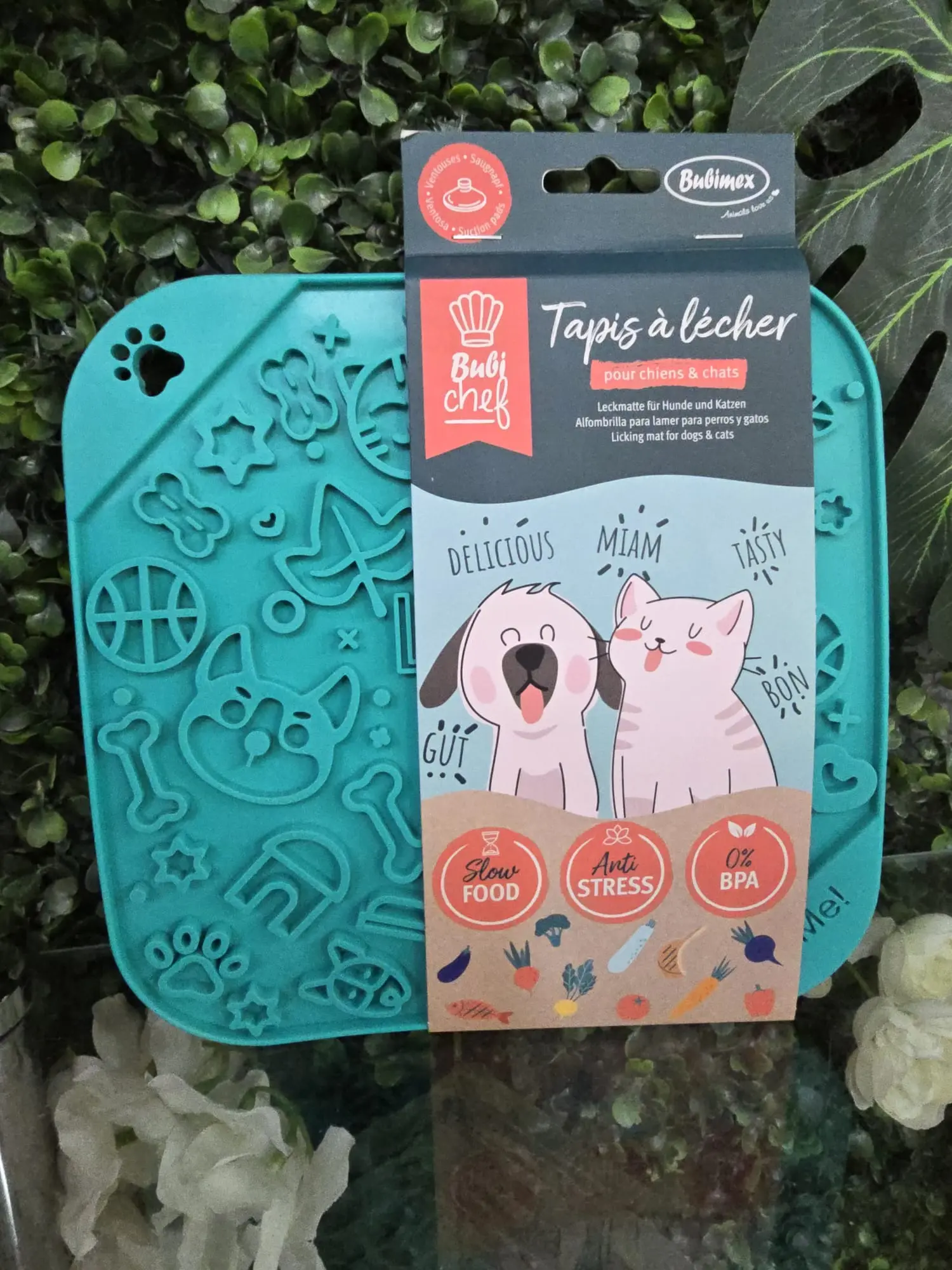 La alfombrilla para lamer “LickMe” es una alternativa al cuenco para su perro o gato. Lamer libera el estrés (secreción de endorfinas) y favorece la salivación. La saliva es esencial para proteger los dientes de su mascota y mejorar la digestión de los alimentos.