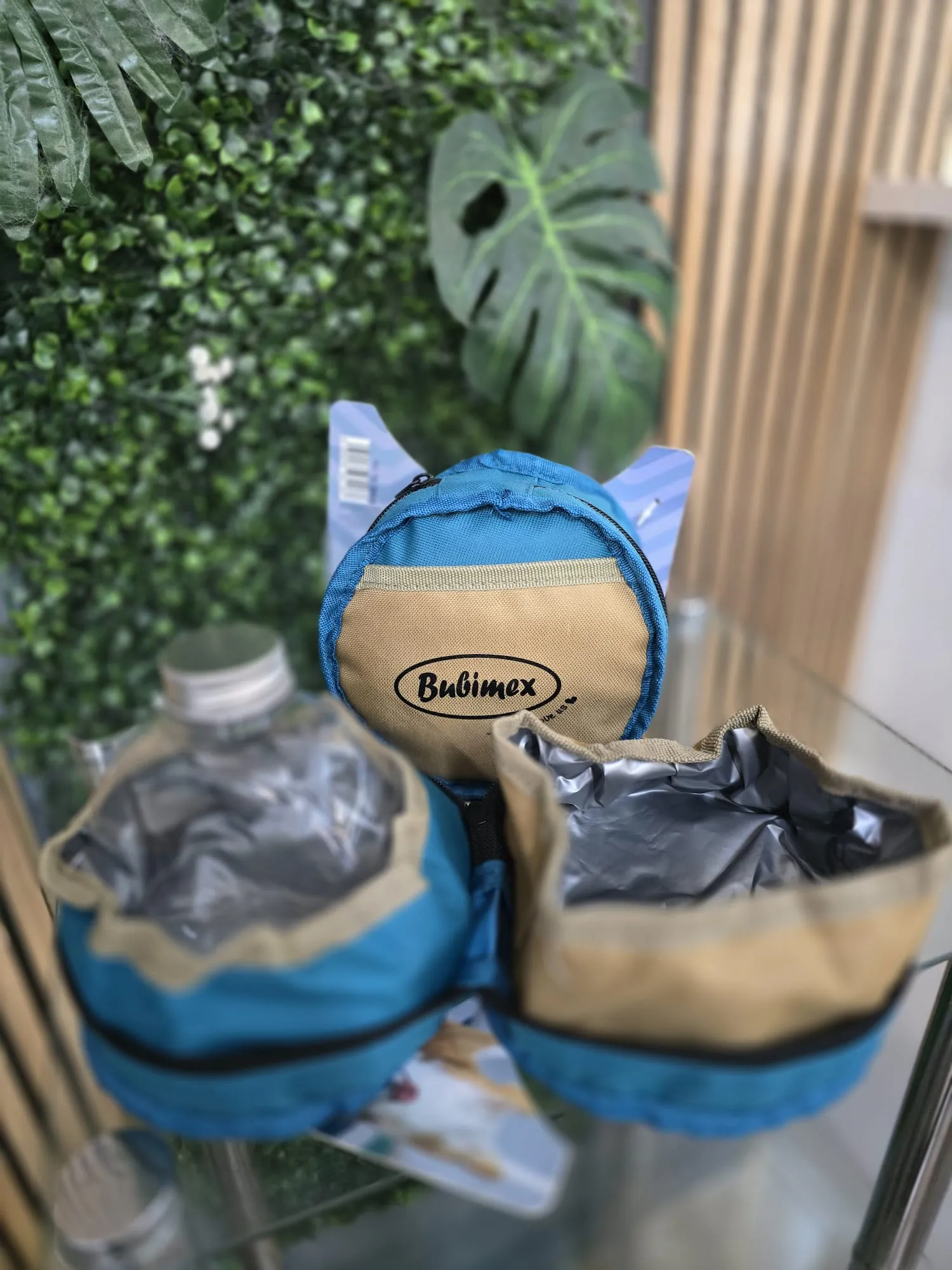 Comedero doble de viaje, con botella de agua de 500ml.